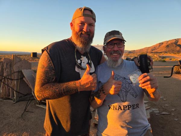 Exactly. That was the first punch... He brought down salmon, and we cooked it over a firepit last night. @Magwa, I know Deb has all the pictures that Jolene took of the cooking process... THE CRUSHER was the blade that Mike made for them. It's beautiful, it was delivered well after dinner, and it was the fukkin knockout punch...