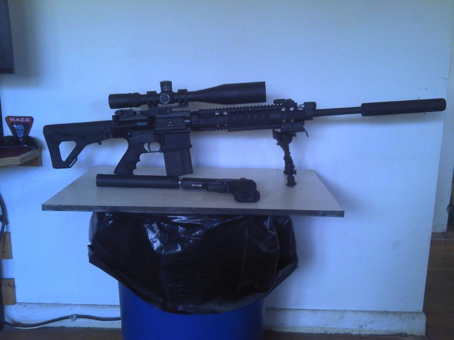 1legdown Posted November 21, 2014 Report Share Posted November 21, 2014 i upgraded sportical...trigger..pistol grip...sling system...15" free float front rail...front left hand finger/hand grip...front verticle grip bipod...small 190 lum light...45 buis...3x9x40 nikon bdc scope. Hunting and target rifle. Will shoot 1/4 moa at 200 yds. WEIGHTS 11.3 lbs no mag....can reduce 2lbs removing vert pod, buis, light. How does that compare with you guys and gals out in 308ar land? Quote Link to comment Share on other sites More sharing options...