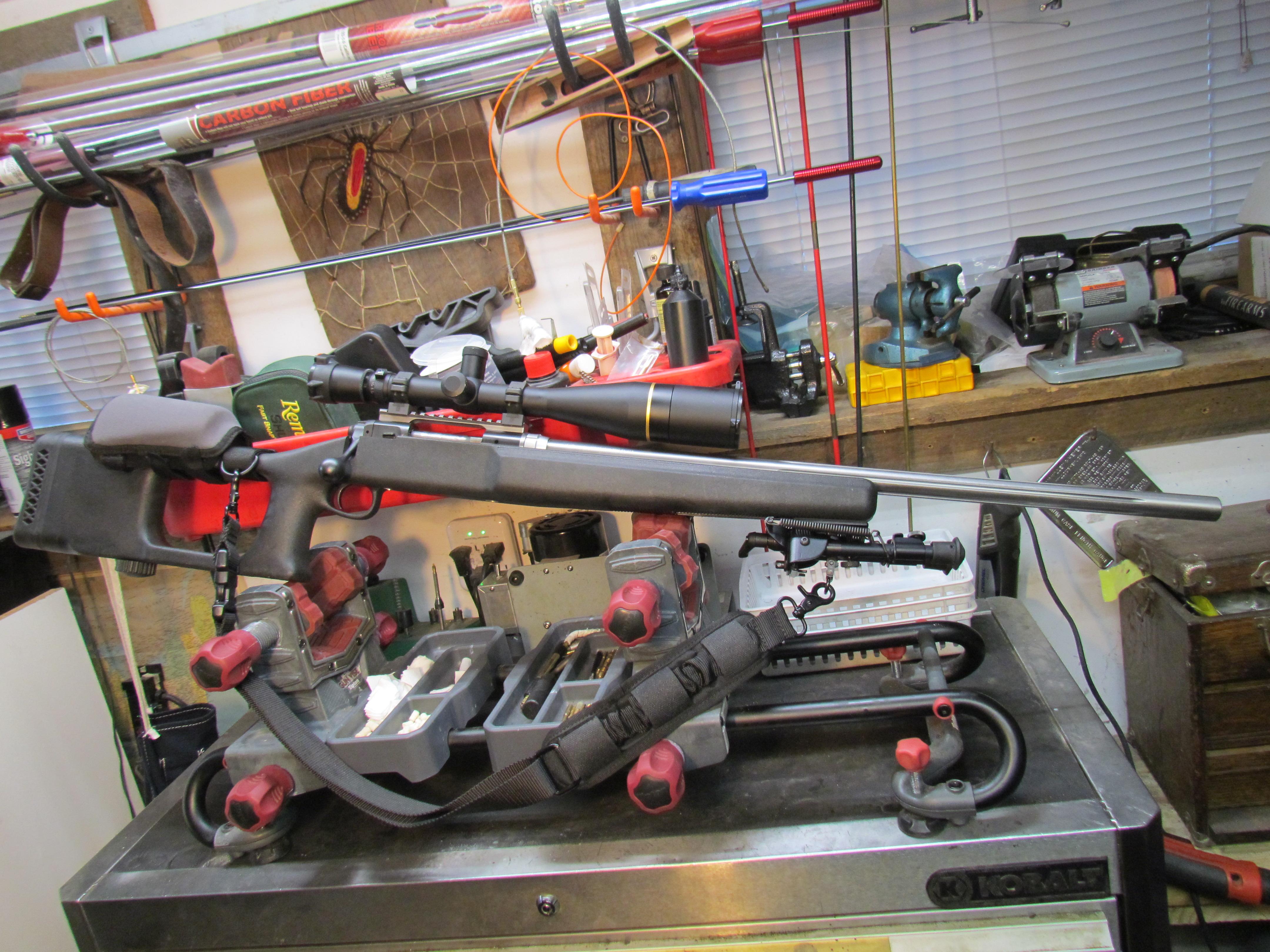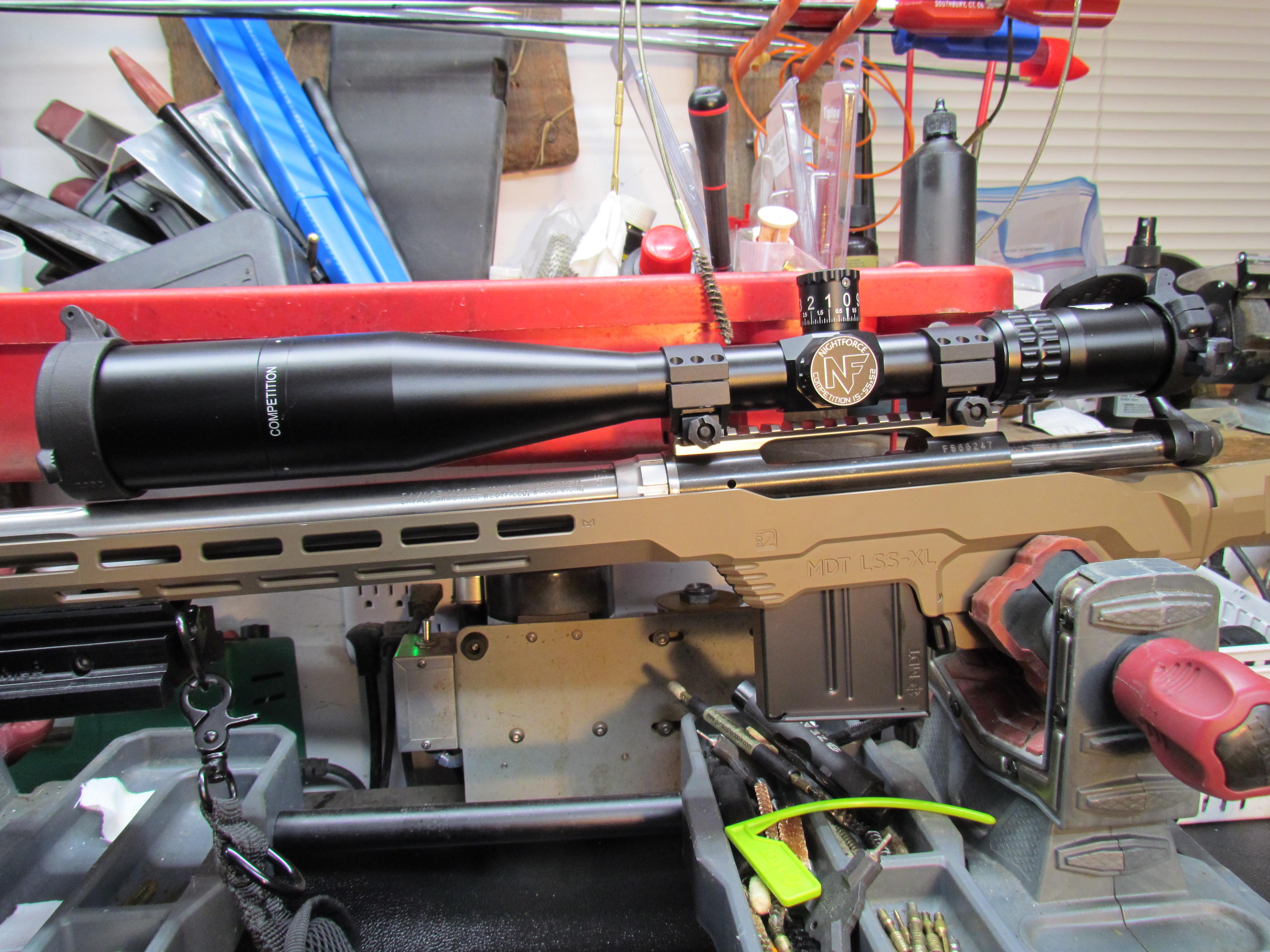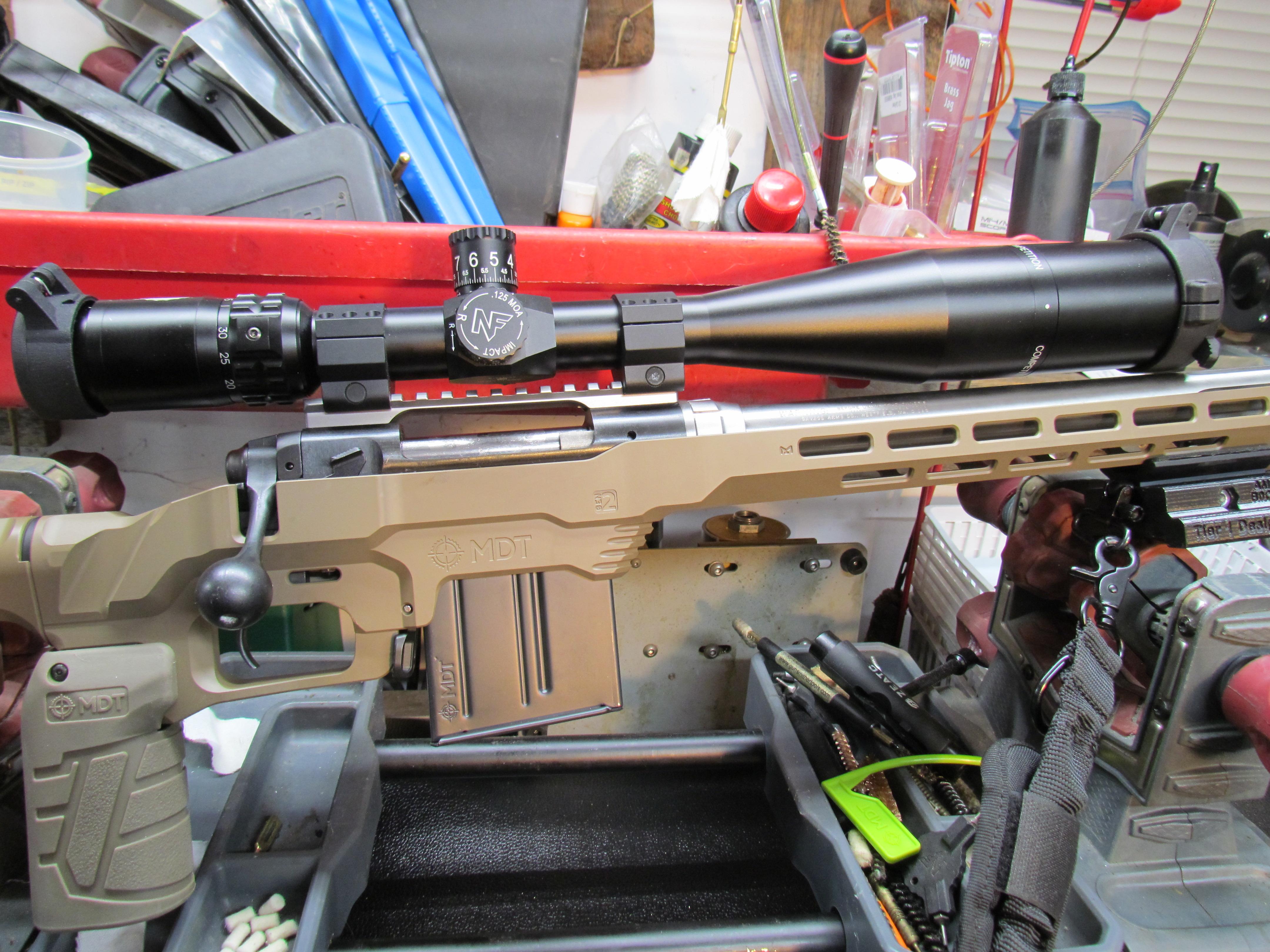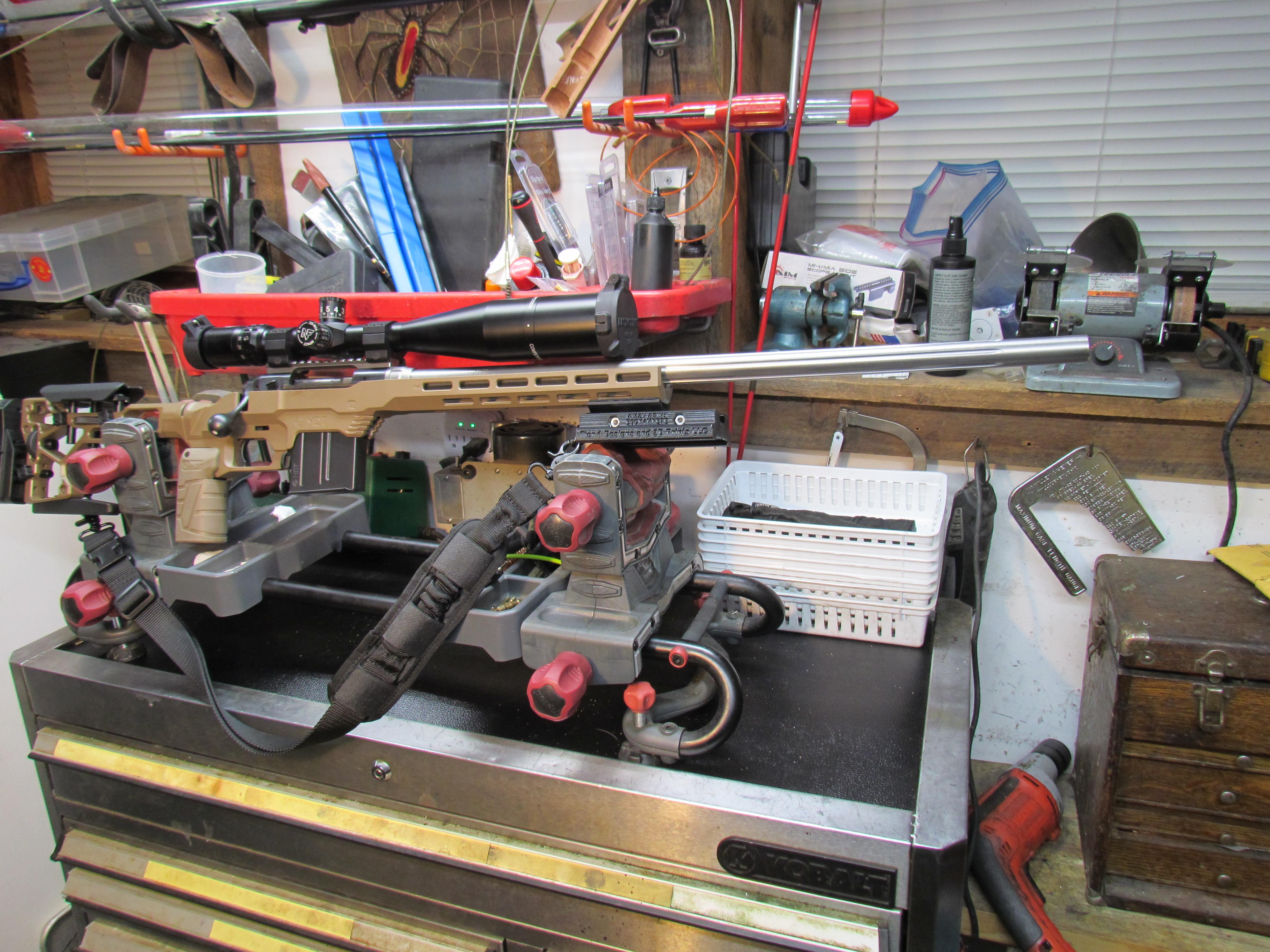 My wife Linda bought this rifle as a birthday present for me about 30 years ago and it has been great. Originally came in a Choate chassis and had an 8.5 - 25 Leupold Mk4 on top of a heavy fluted 26" 1-9 barrel. Added Jard trigger somewhere along the way. Now sits in an MDT LSS-XL chassis and sports a Night Force 15-55x52 Competition scope. Having a ball getting ready for the upcoming shooting season. Barrel was cleaned down to bare metal and has had an HBN coating applied. This rifle has loved Berger 73 gn bullets over 24 gn of Varget in Lapua brass. Whatta Hobby!