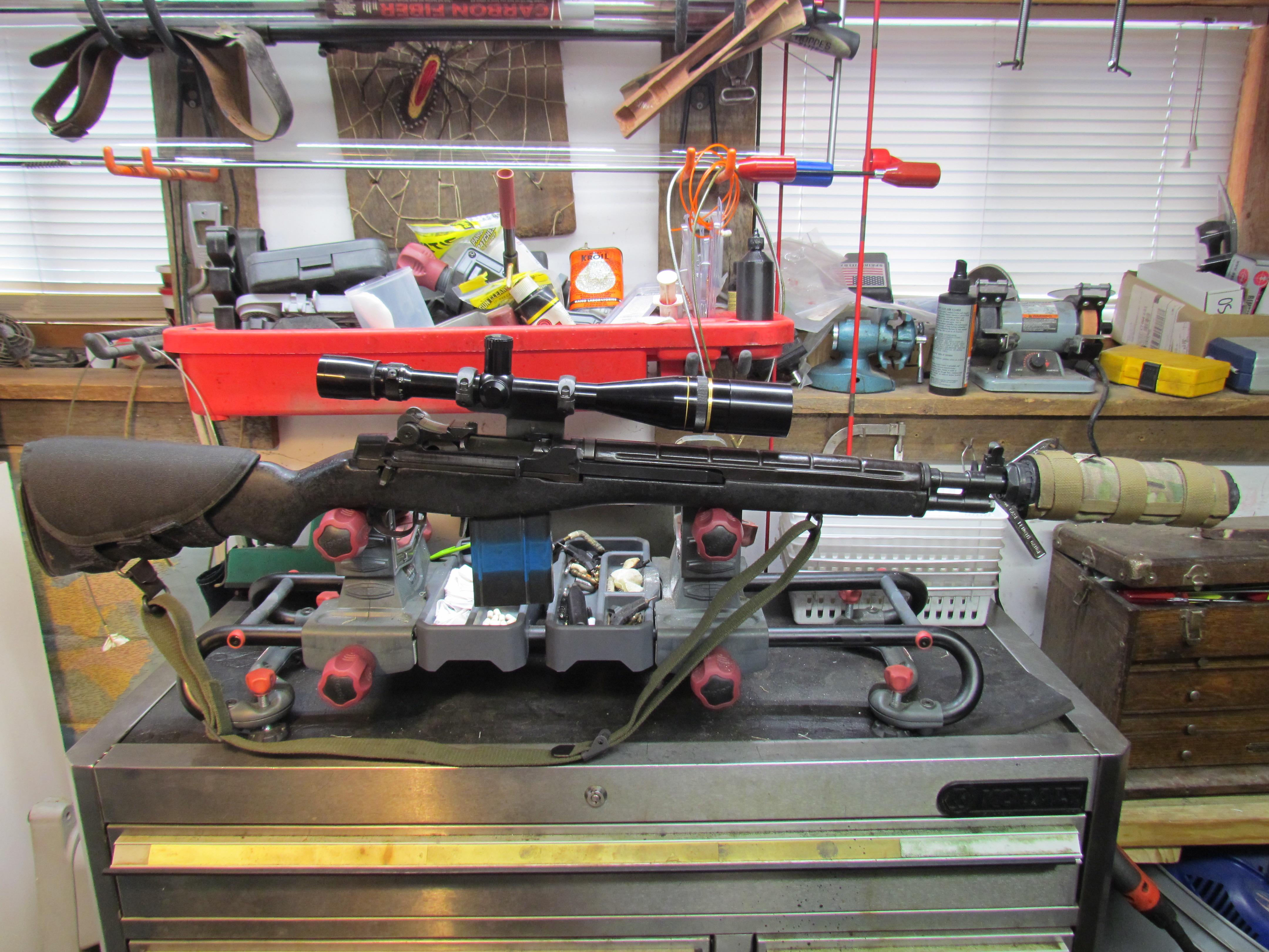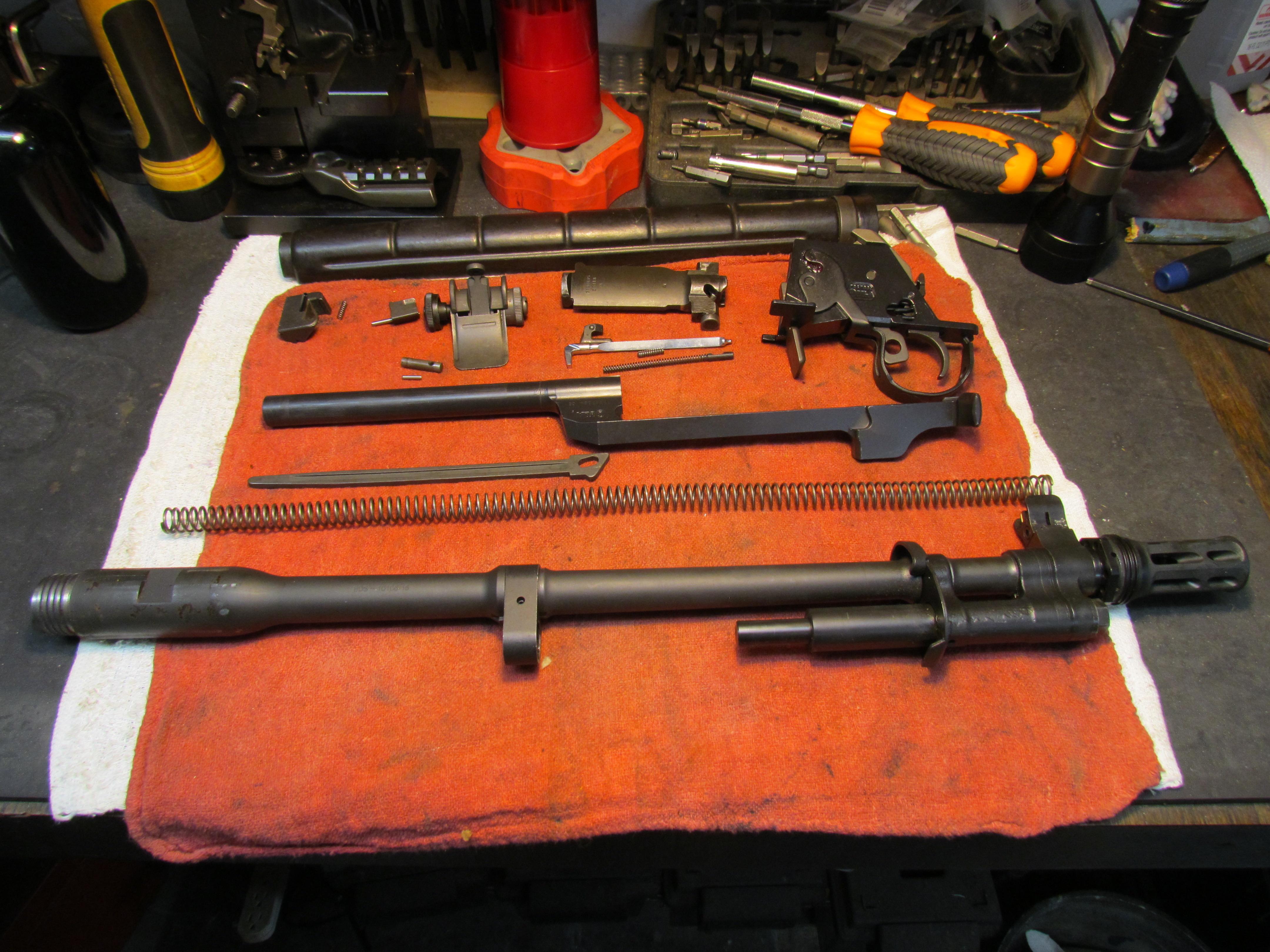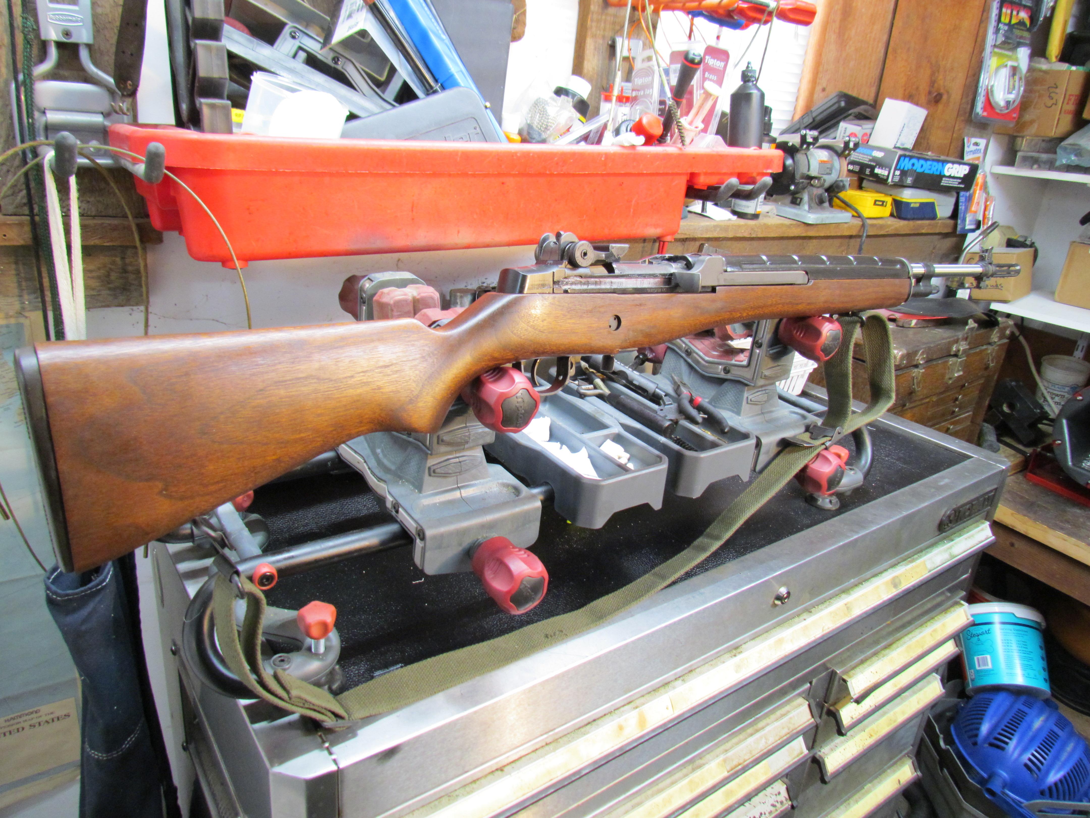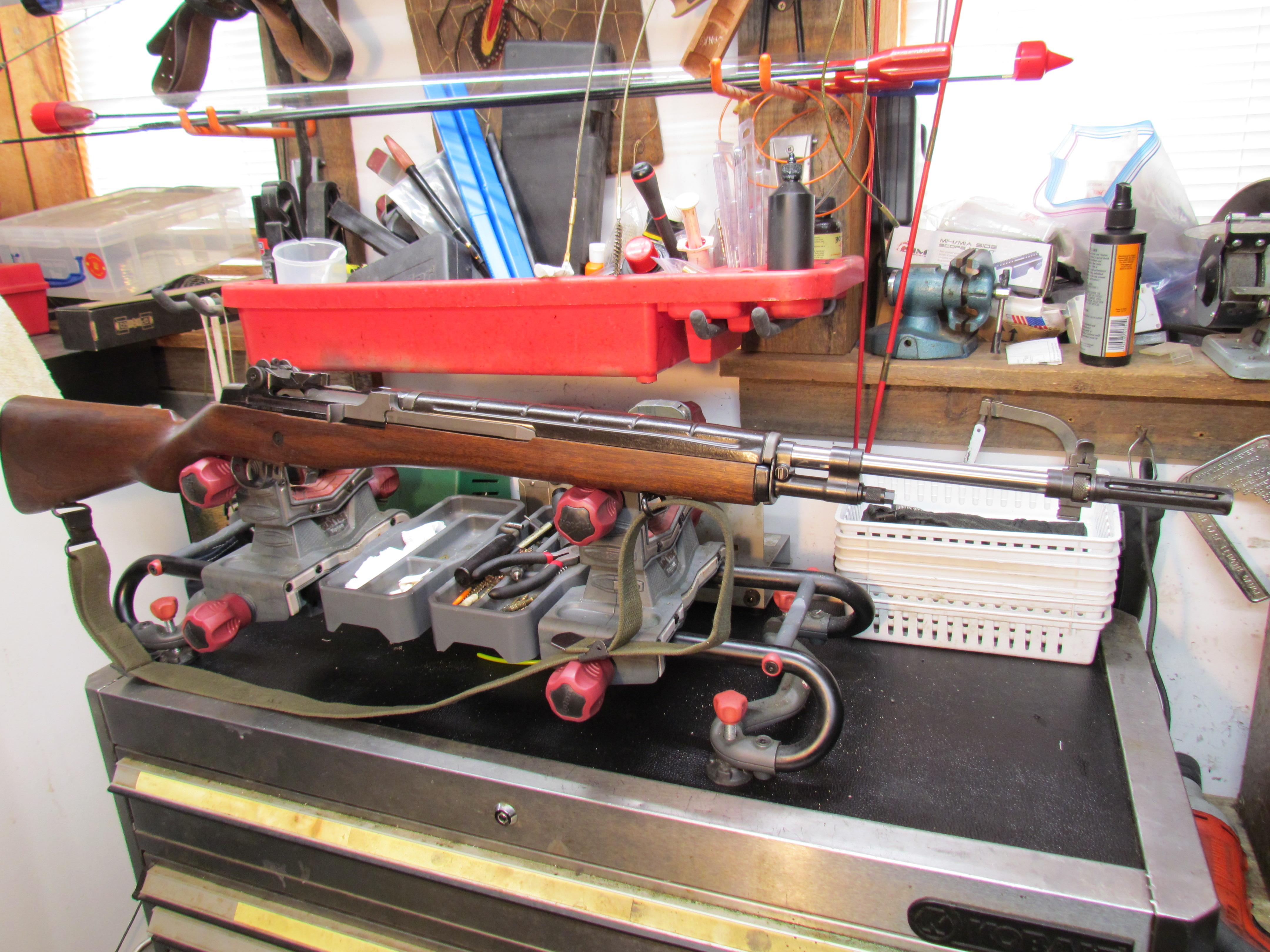NF1E Posted 13 hours ago Report Share Posted 13 hours ago I originally put this M-14 JRA group buy receiver together with mixed parts laying around the shop. Now it's time to make things a bit different. Had a Bula suppressor ready 16.5 in barrel and a Winchester bolt installed. Since then I have decided to use one of the Saturn/Liberty SS heavy 22" barrels off the shelf along with one of my USGI SA kits. Cold weather is good for something. Started taking it apart this morning. Whatta Hobby! Quote Link to comment Share on other sites More sharing options...